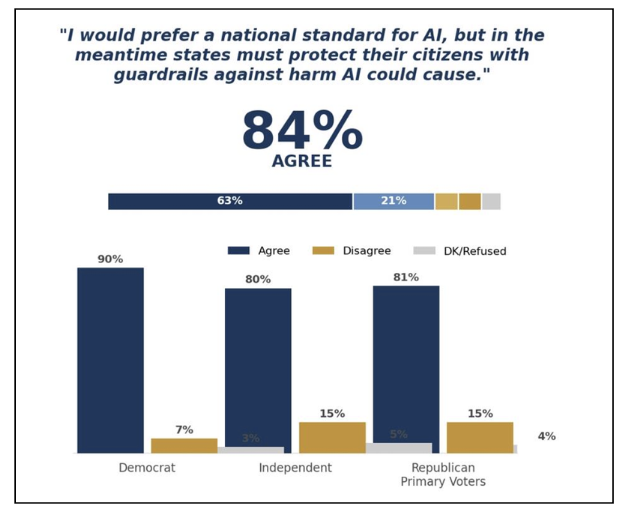 In the absence of a national standard and Congressional-led legislation on AI safety, 84% of respondents said state lawmakers must step in to protect against AI harm.