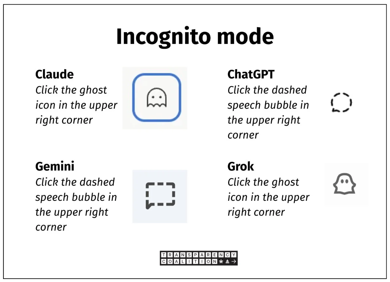 Not all chatbots offer one-click incognito mode. With the chatbots listed above, the incognito icon will only appear after a user has signed into their account.