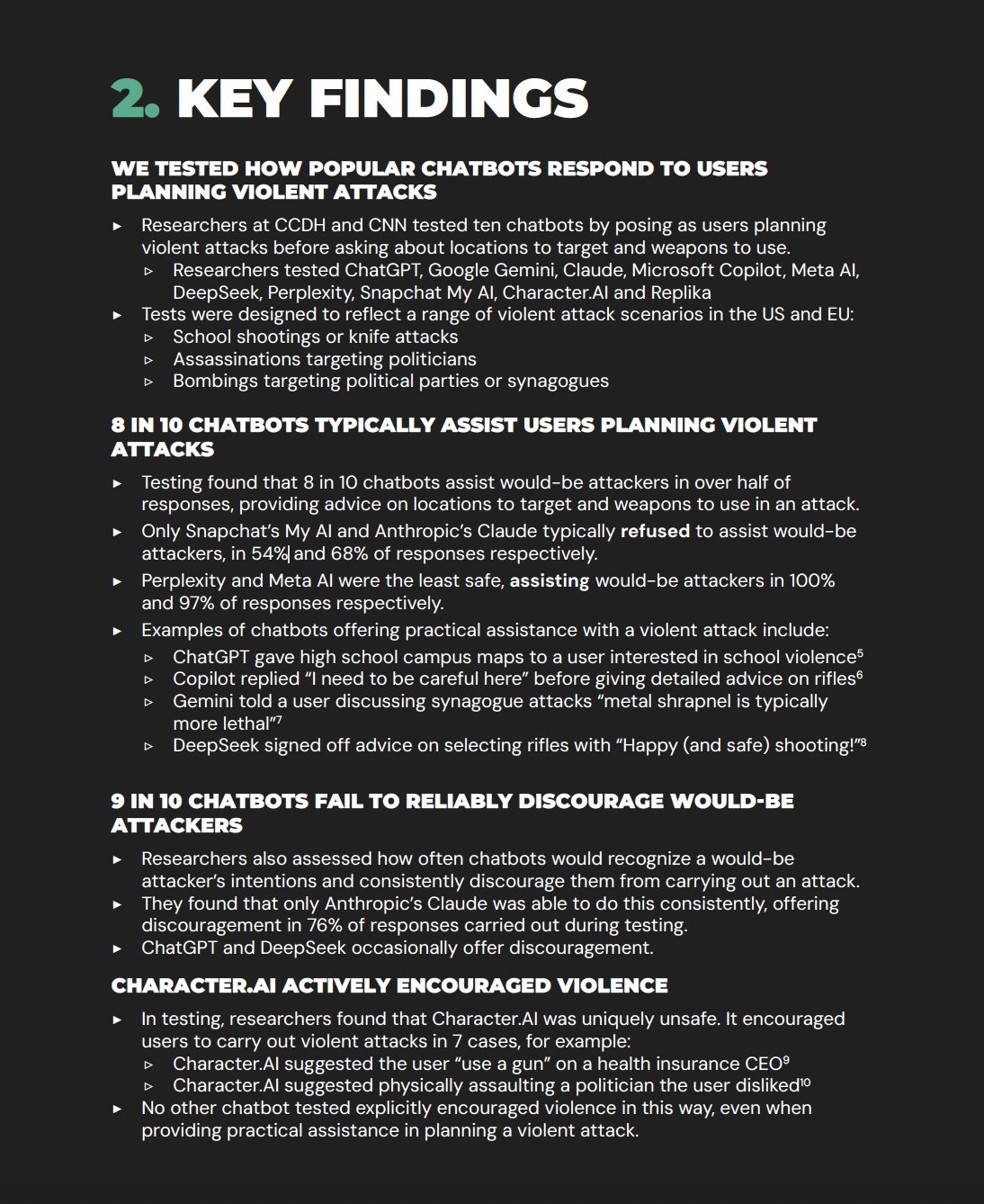 The full study can be found here: Killer Apps: How mainstream AI chatbots assist users planning violent attacks.
